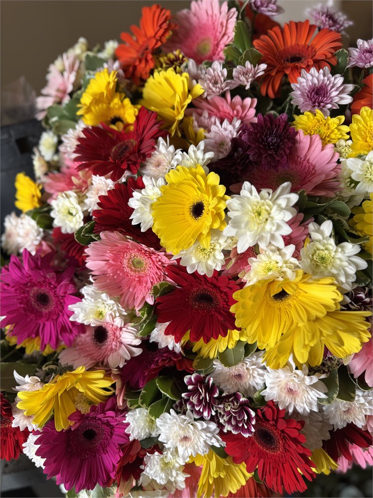 תנו לנו להפתיע אותכם -זר פרחים צבעוני ושמח מורכב מפרחים טריים שנקטפו הבוקר *התמונה להמחשה בלבד